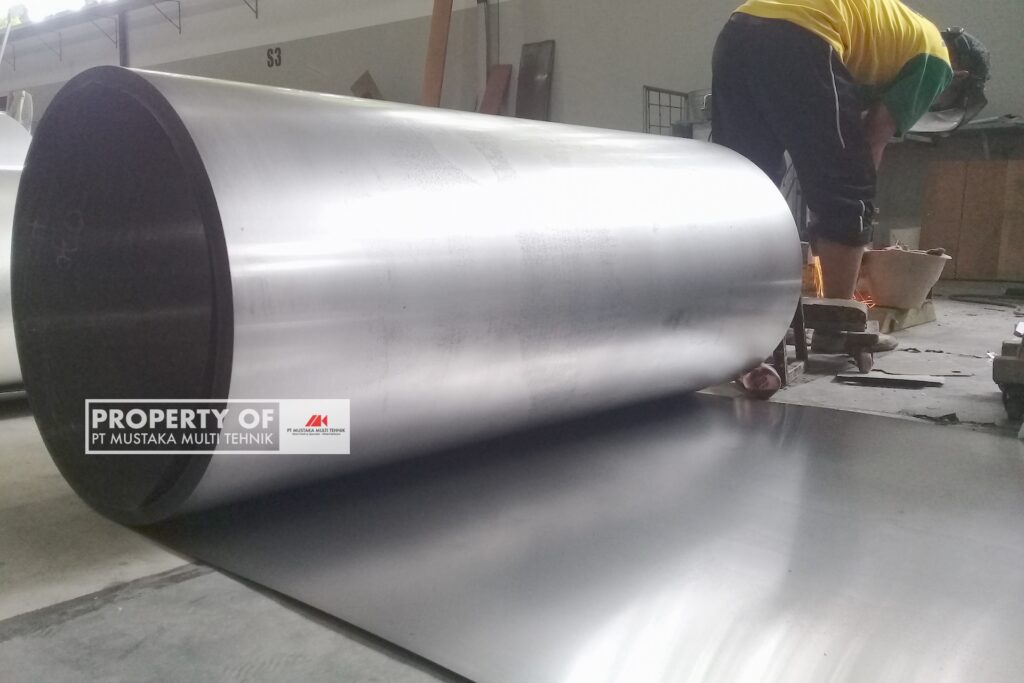 Selanjutnya plat di lubangi atau di bor pada semua bagian dari tepi panel yang nantinya akan berguna untuk menjadikan penghubung antara panel satu dengan lainnya waktu pemasangan kubah. Setelah semua panel terkumpul, langkah selanjutnya yaitu proses pengecatan, material yang akan di warnai atau dicat terlebih dahulu dibersihkan dan diberi treatment khusus, antara lain dibersihkan dari segala bentuk kotoran, termasuk minyak, dan debu. hal ini dilakukan dengan tujuan untuk mengurangi kegagalan atau warna yang rusak pada panel dalam proses coating (pelapisan). Setelah melalui proses treatment khusus dan pengeringan, panel-panel tersebut selanjutnya akan di coating(pelapisan) sesuai warna yang di inginkan customer.